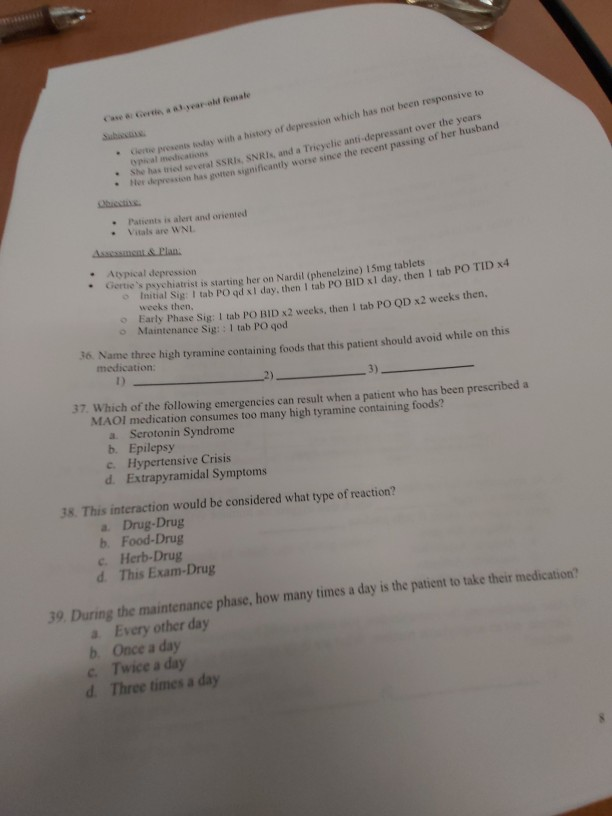 Solved N O Today With A History Of Depression Which Has N Chegg Com