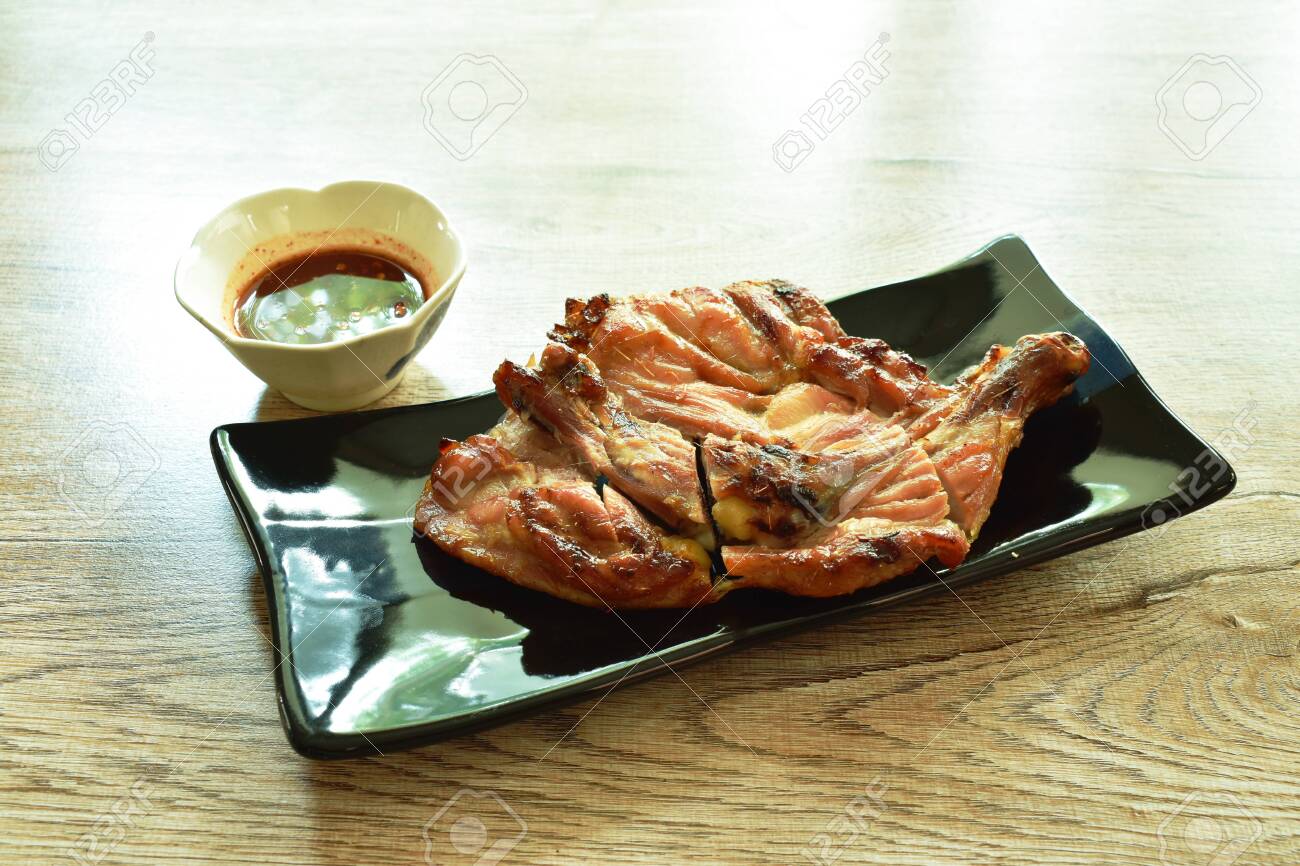 Grilled Chicken Hip And Leg On Plate Dipping With Spicy Tamarind Stock Photo Picture And Royalty Free Image Image