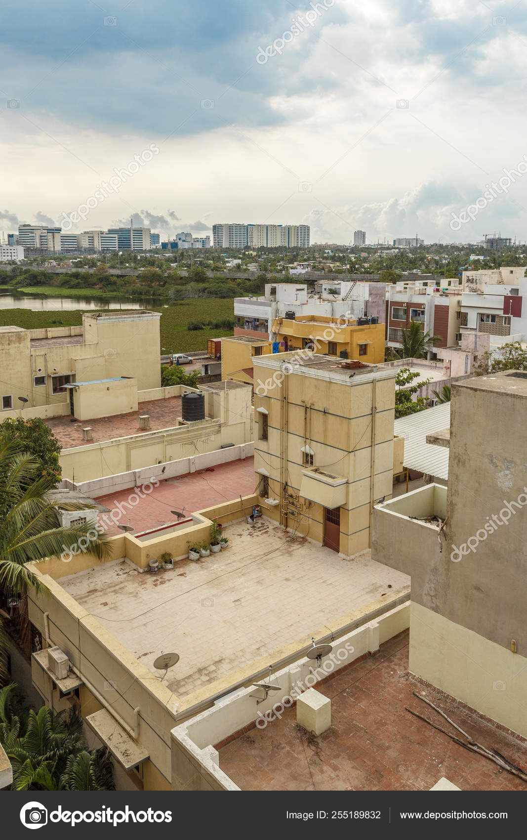 Scenic Aerial View Town Beautiful Dark Cloud Formation Buildings Taramani Stock Photo C Karthickgnani