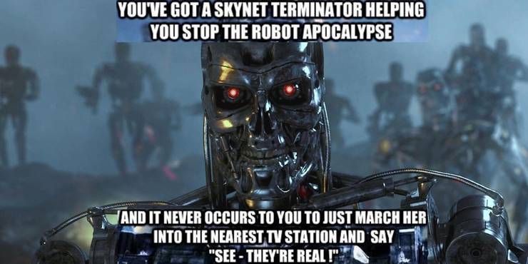 You Ve Got A Skynet Terminator Helping You Stop The Robot Apocalypse And It Never Occurs To You To Just March Her Into The Nearest Tv Station And Say See They Re Real