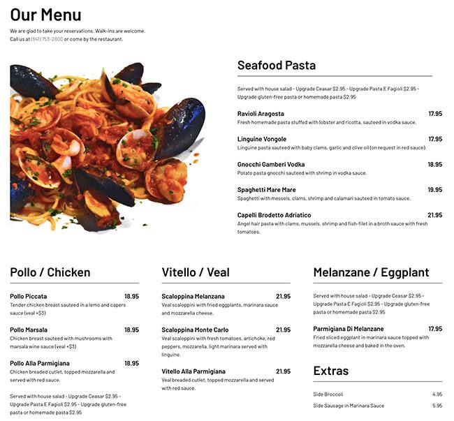 Tiramisu Ristorante Italiano Menu In Bradenton Florida