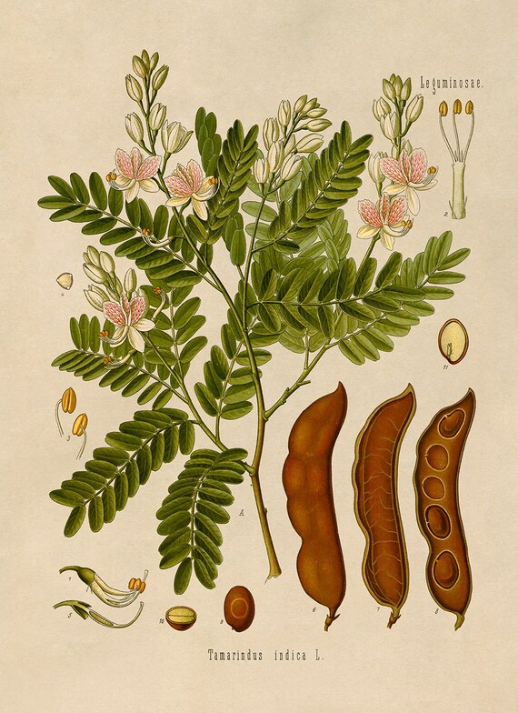 Tamarind Tree Plant Botanical Illustration Poster Botany Etsy
