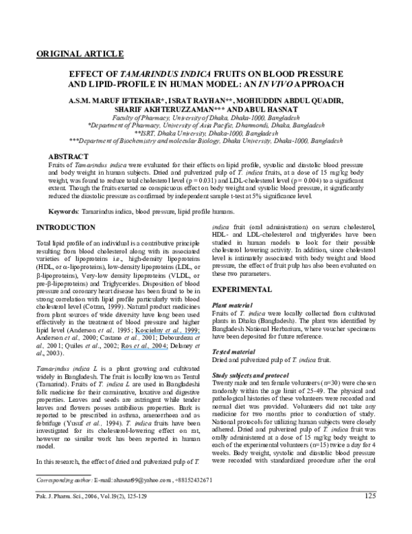 Pdf Effect Of Tamarindus Indica Fruits On Blood Pressure And Lipid Profile In Human Model An In Vivo Approach Pak J Pharm Sci Sharif Akhteruzzaman Academia Edu