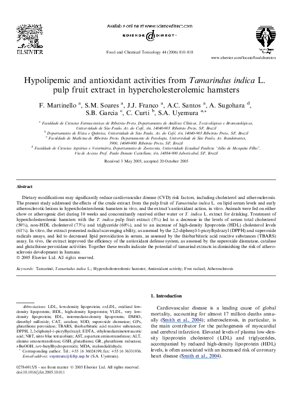 Pdf Hypolipemic And Antioxidant Activities From Tamarindus Indica L Pulp Fruit Extract In Hypercholesterolemic Hamsters Sergio Uyemura Academia Edu